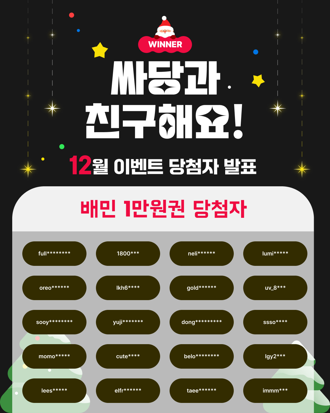 12월 싸당 이벤트 당첨자 발표