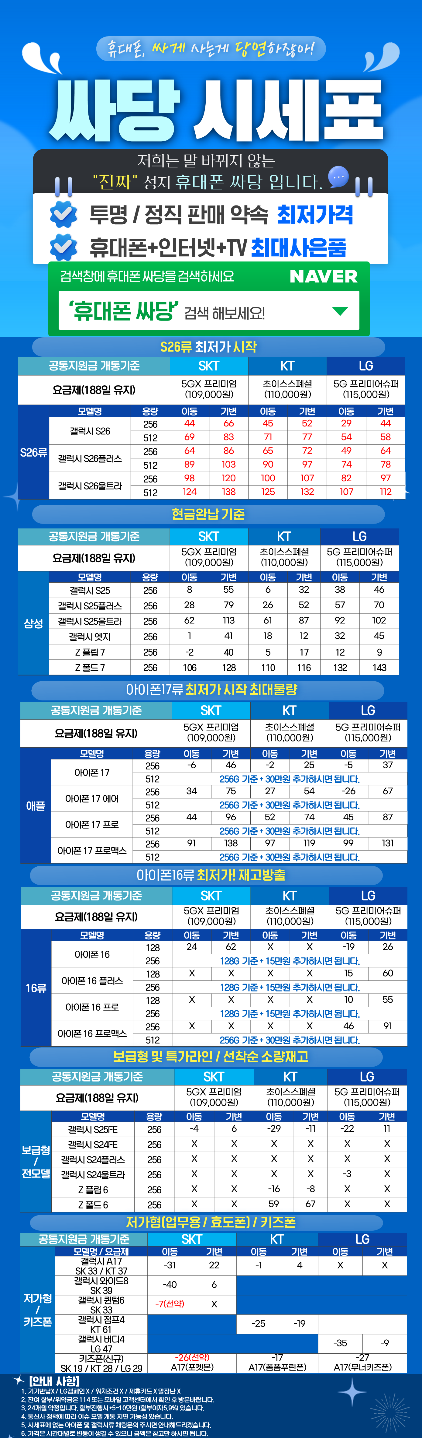 [경기 고양시 시세표] 경기도 고양시 휴대폰 성지 시세표