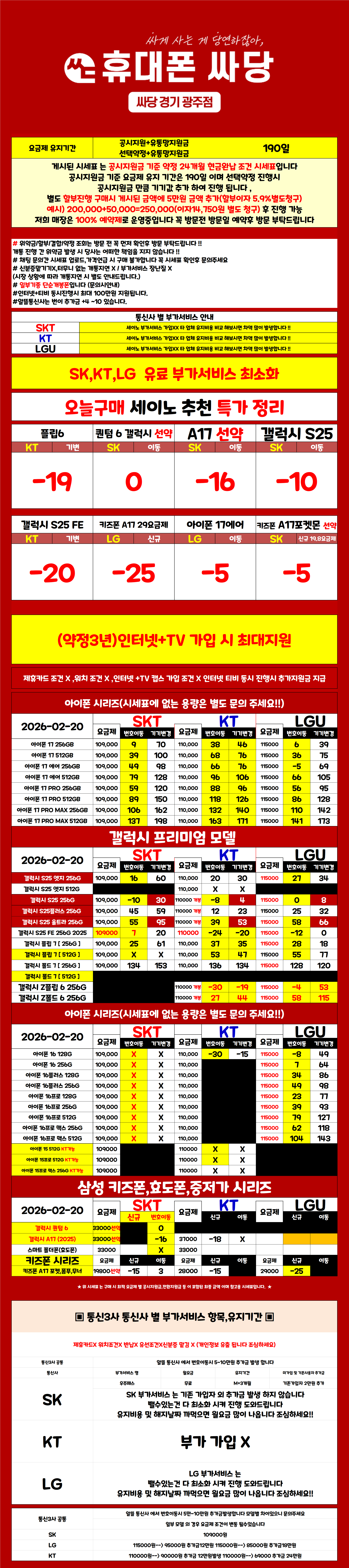 [경기 광주시 시세표] 경기도 광주 광주시 경기광주 휴대폰 성지 시세표