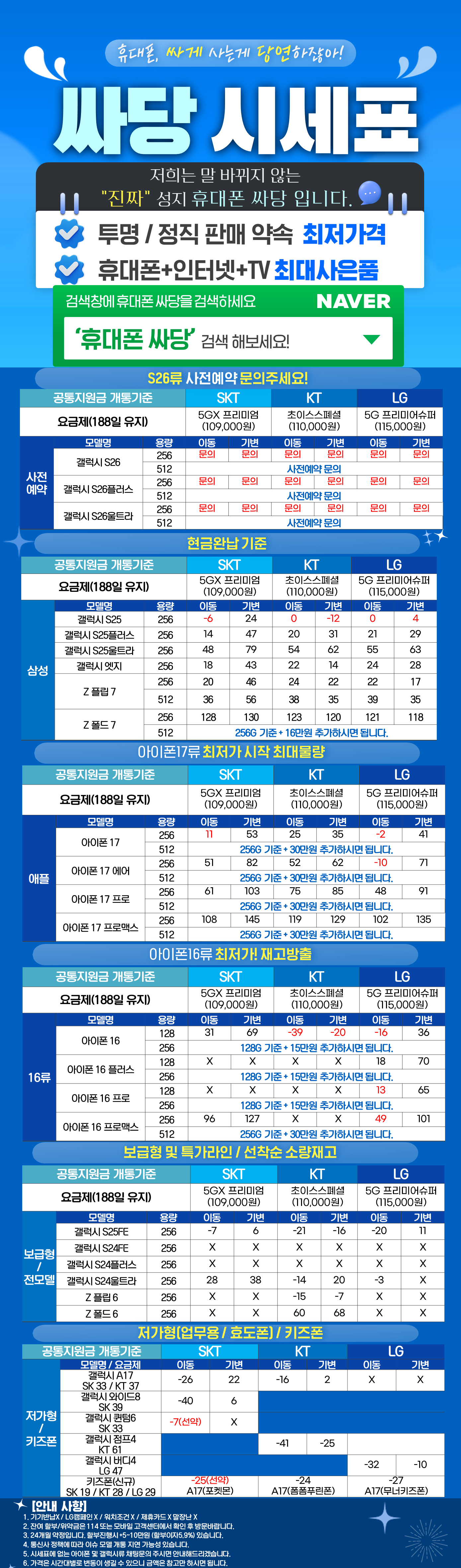 [경기 남양주시 시세표] 경기도 남양주 휴대폰 성지 시세표