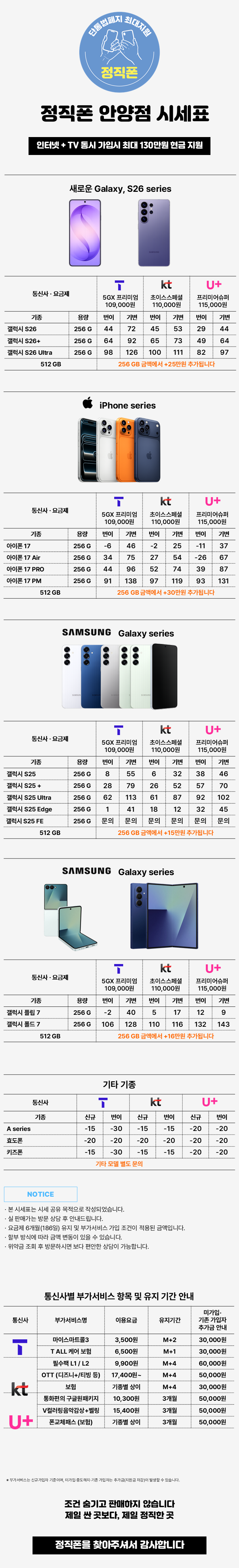 [경기 안양시 시세표] 경기도 안양 휴대폰 성지 정직폰 시세표