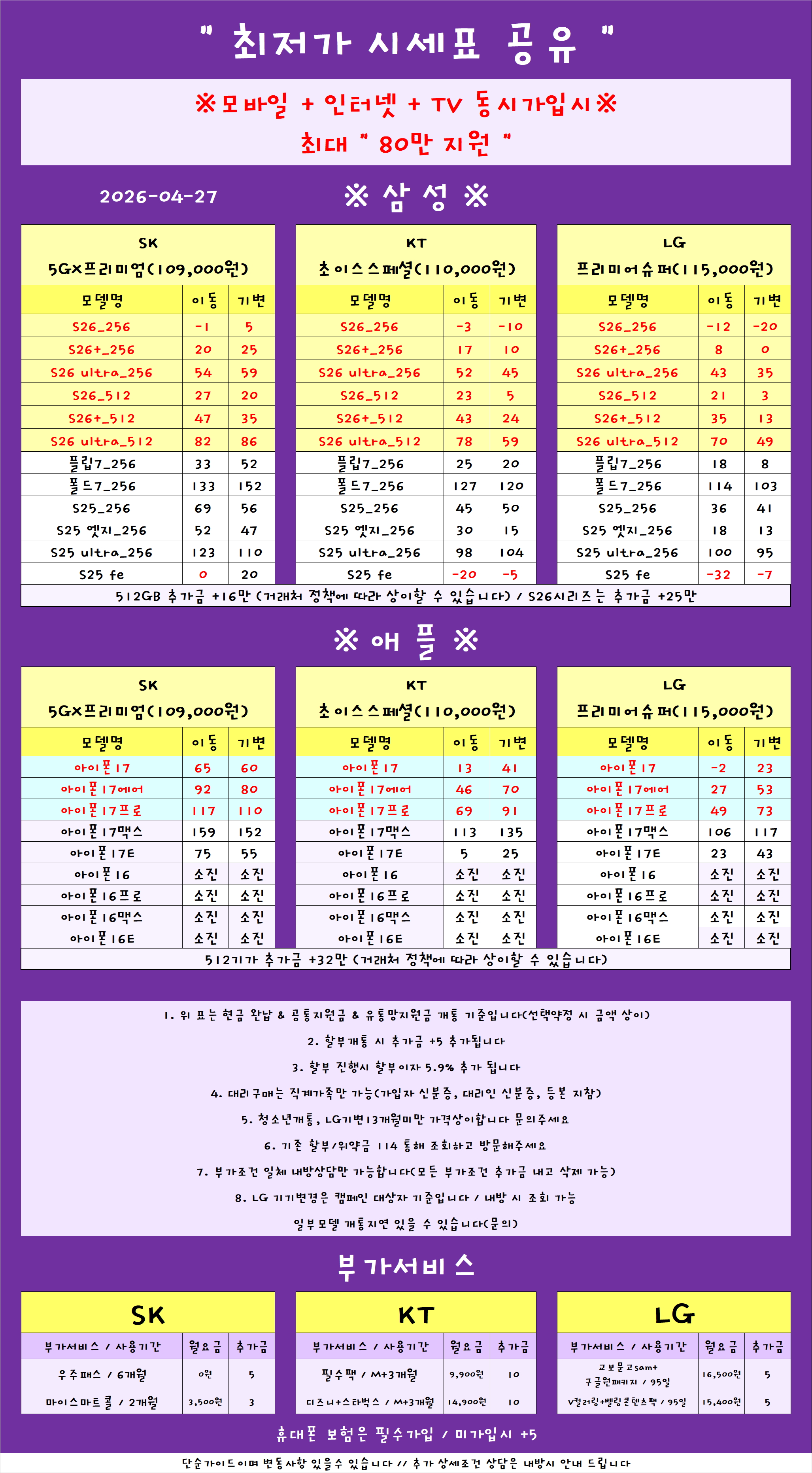 전국 최저가 휴대폰 성지 시세표 확인하세요!