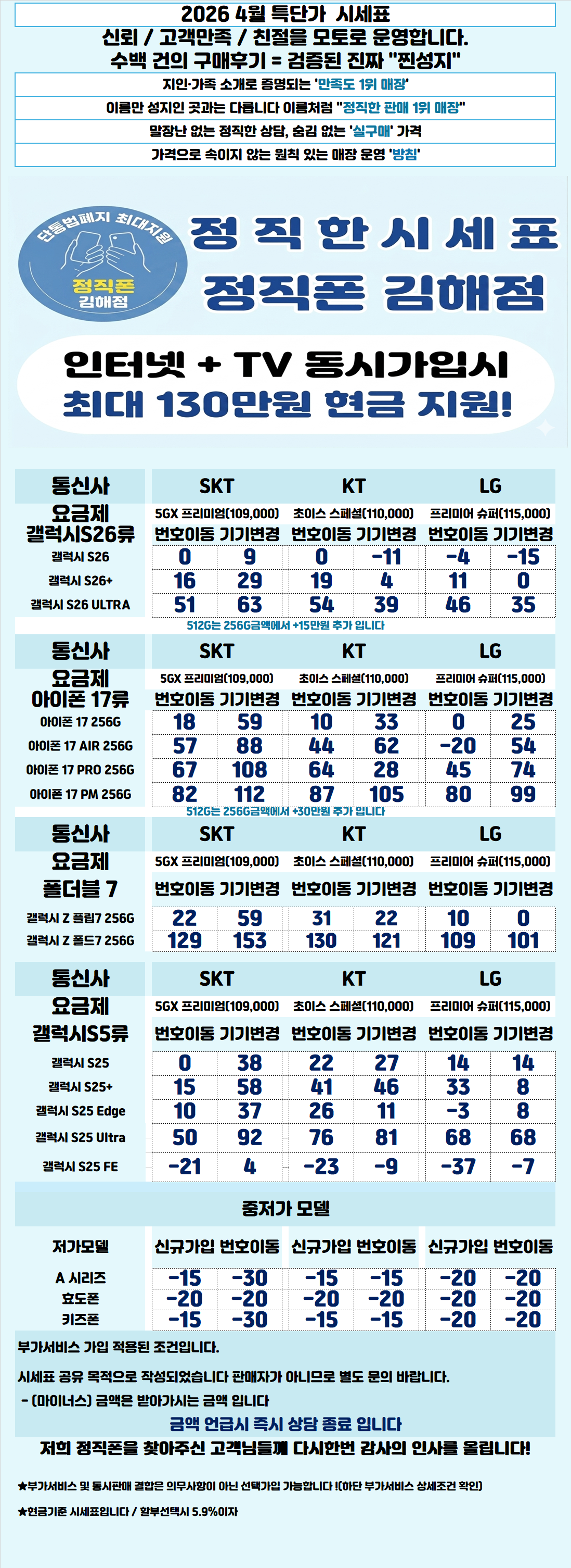 요금제와 단말 조건은 시세 기준으로 투명하게 안내드립니다