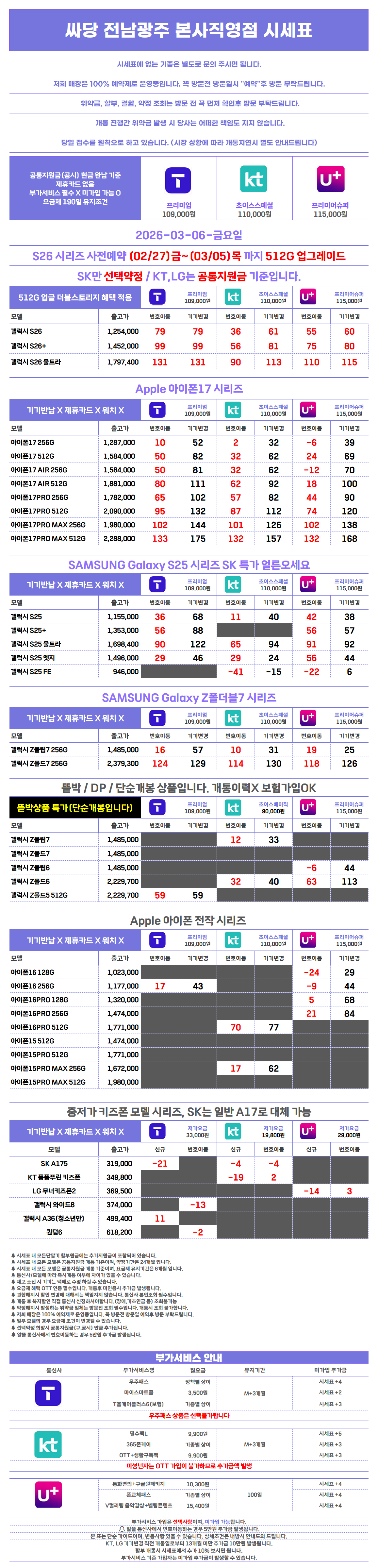 휴대폰 성지 싸당 전남 광주 수완점