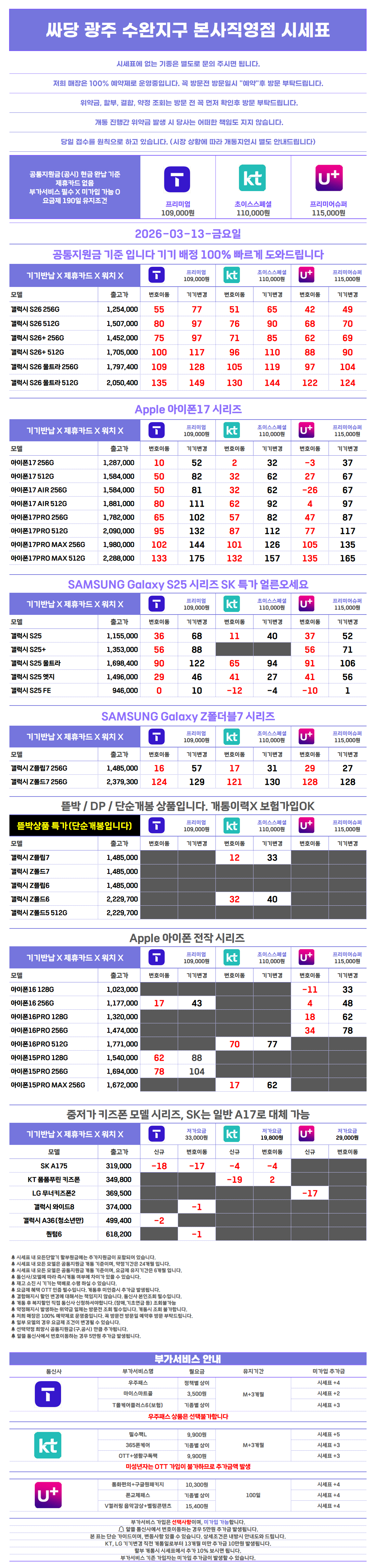 [광주 광산구 시세표] 광주광역시 광주 광산구 수완지구 첨단지구 휴대폰 성지