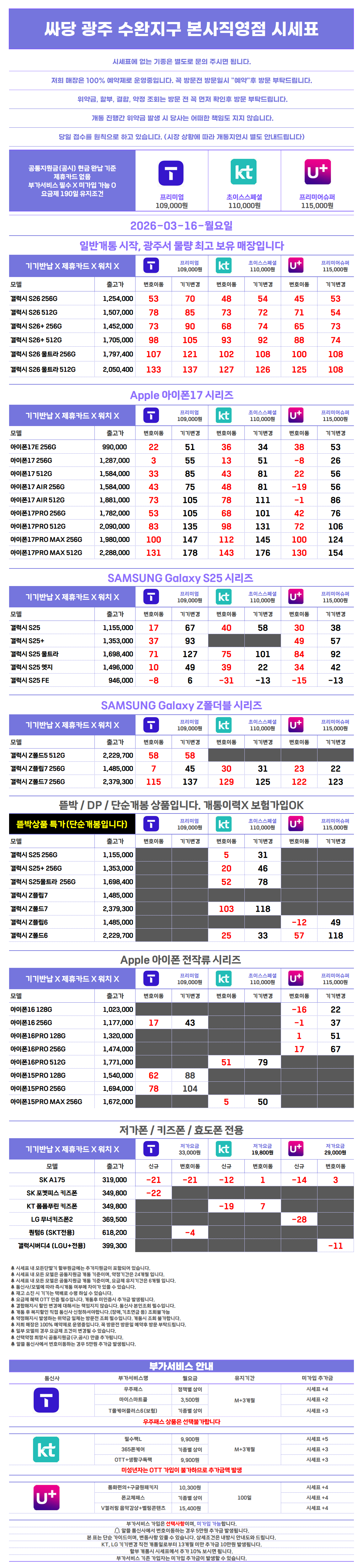 휴대폰 성지 싸당 전남 광주 수완점