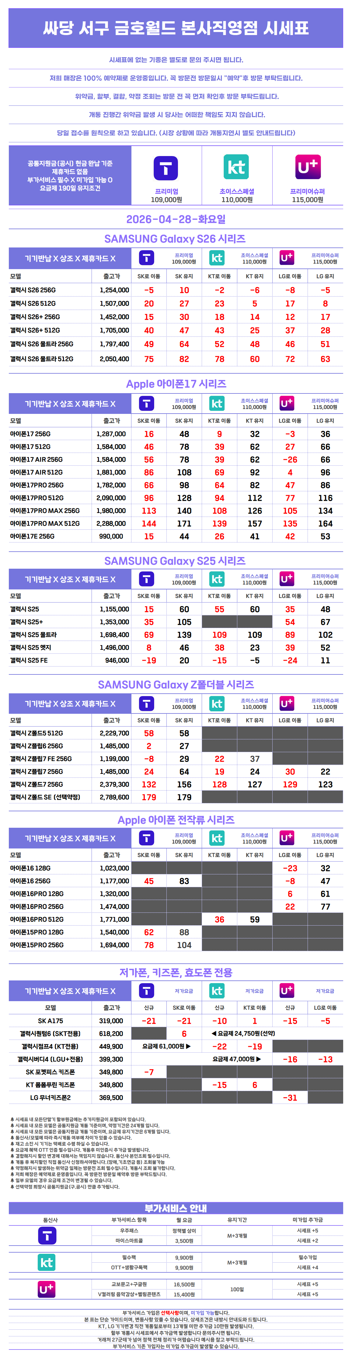 [광주 서구 시세표] 광주광역시 서구 금호월드 휴대폰 성지 시세표