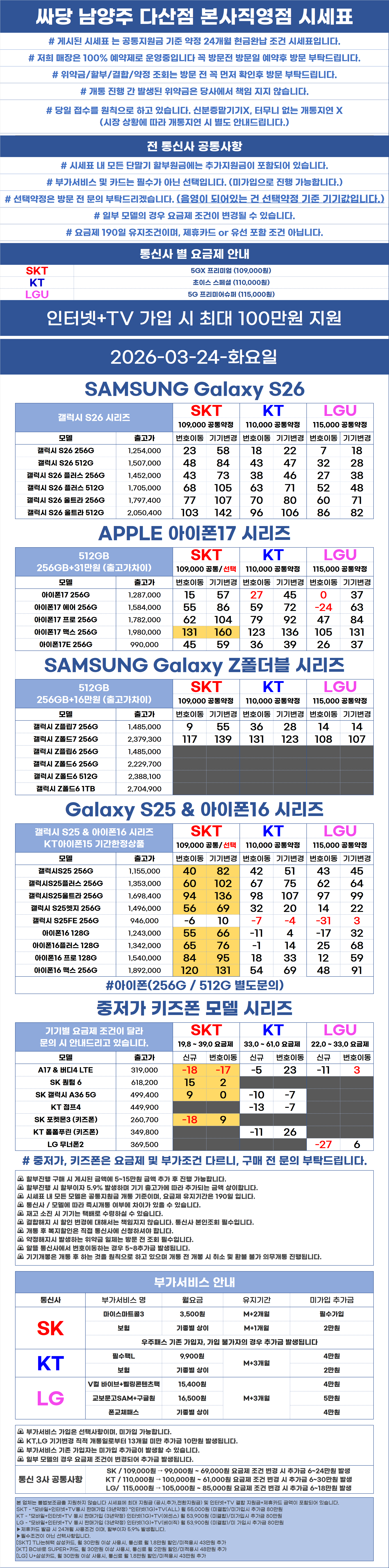 ① 모든가격은 공통지원금 기준이며, 기기 즉시수령 및 개통됩니다.