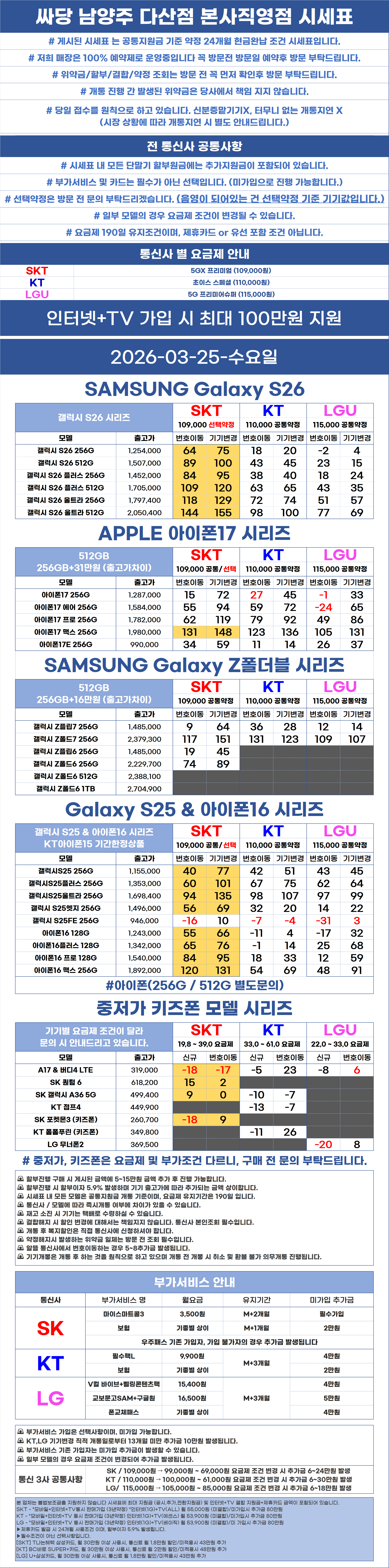 ① 모든가격은 공통지원금 기준이며, 기기 즉시수령 및 개통됩니다.