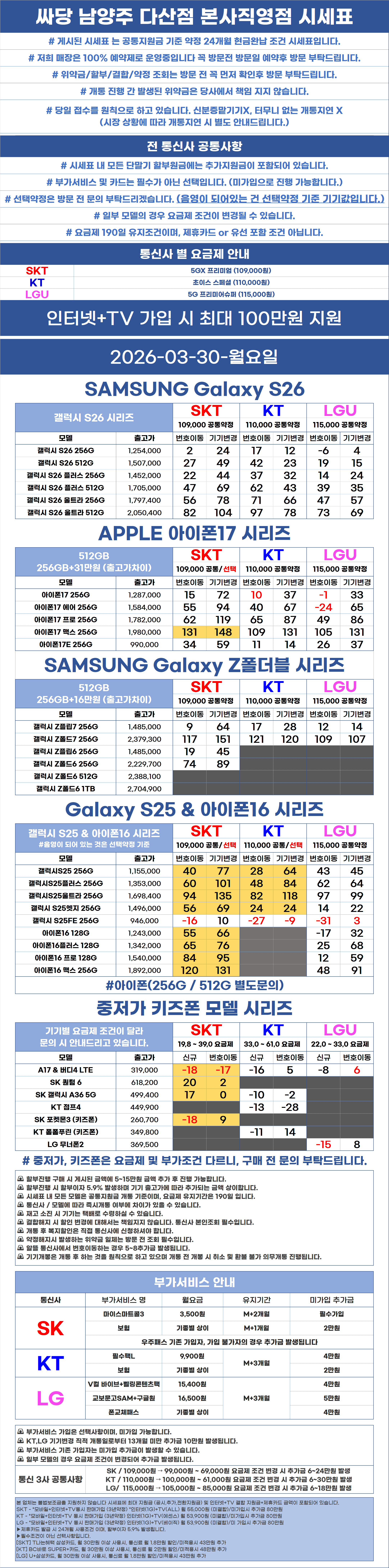 ① 모든가격은 공통지원금 기준이며, 기기 즉시수령 및 개통됩니다.
