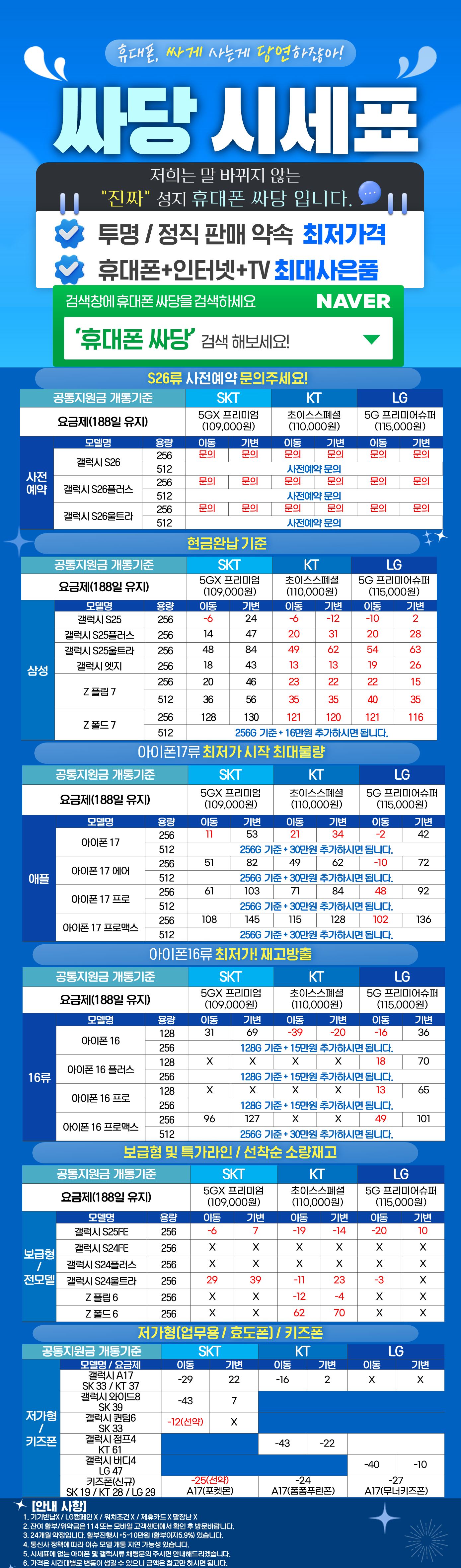 [서울 강서구 시세표] 서울시 강서구 휴대폰 성지 시세표