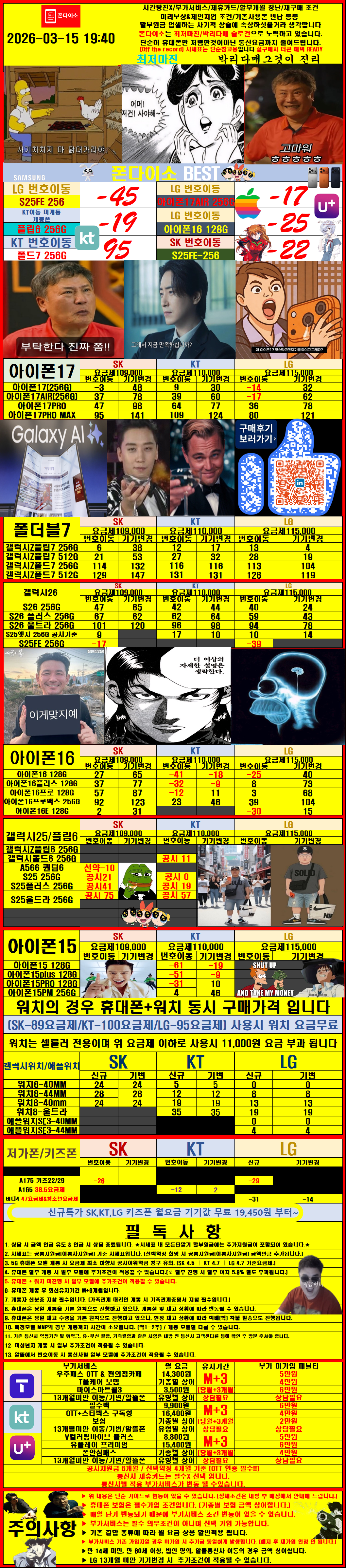 📢 시세표 안내: 최대 지원금(공시·추가·전환지원금) 및 워치개통+ 제휴카드(세이브카드X)청구형 카드 단순 자동이체 혜택이 모두 포함되어 있습니다. 💼