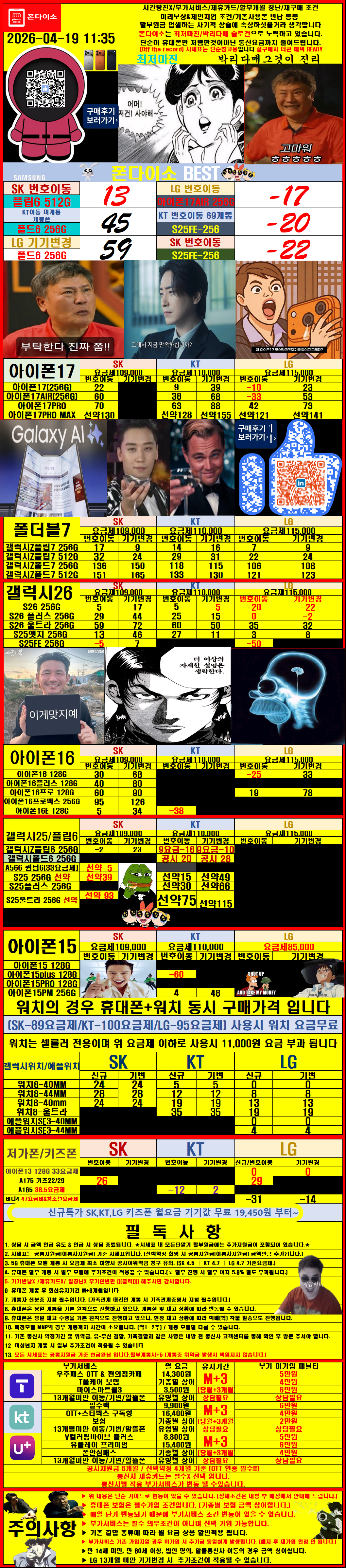 [서울 도봉구 시세표] 서울시 도봉구 도봉 휴대폰 성지 시세표 4월19일 일요