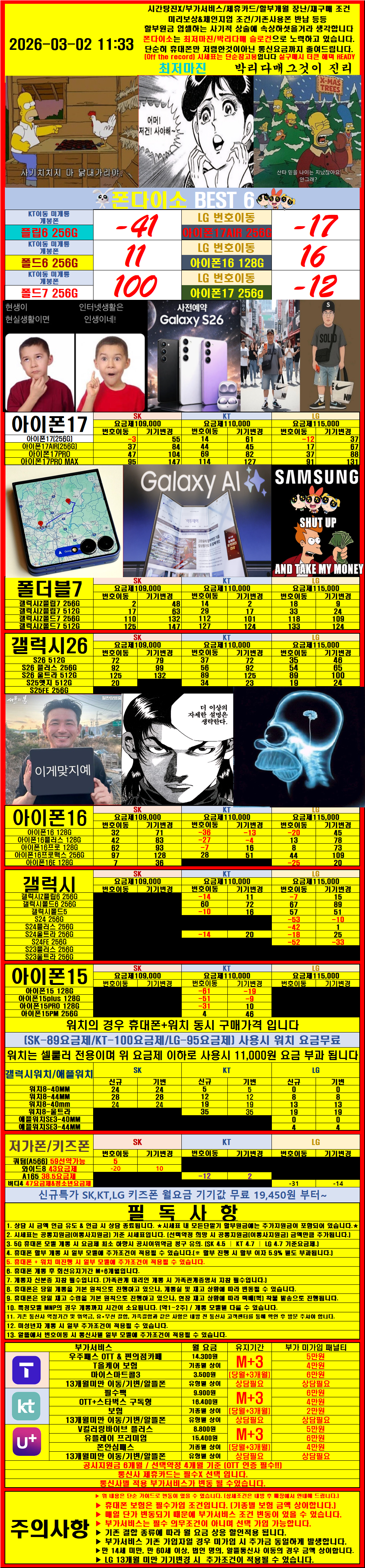 [서울 도봉구 시세표] 서울시 도봉구 도봉 휴대폰 성지 시세표 S26사전예약