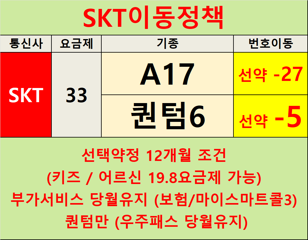 부가서비스 가입 조건이 없는 시세표는