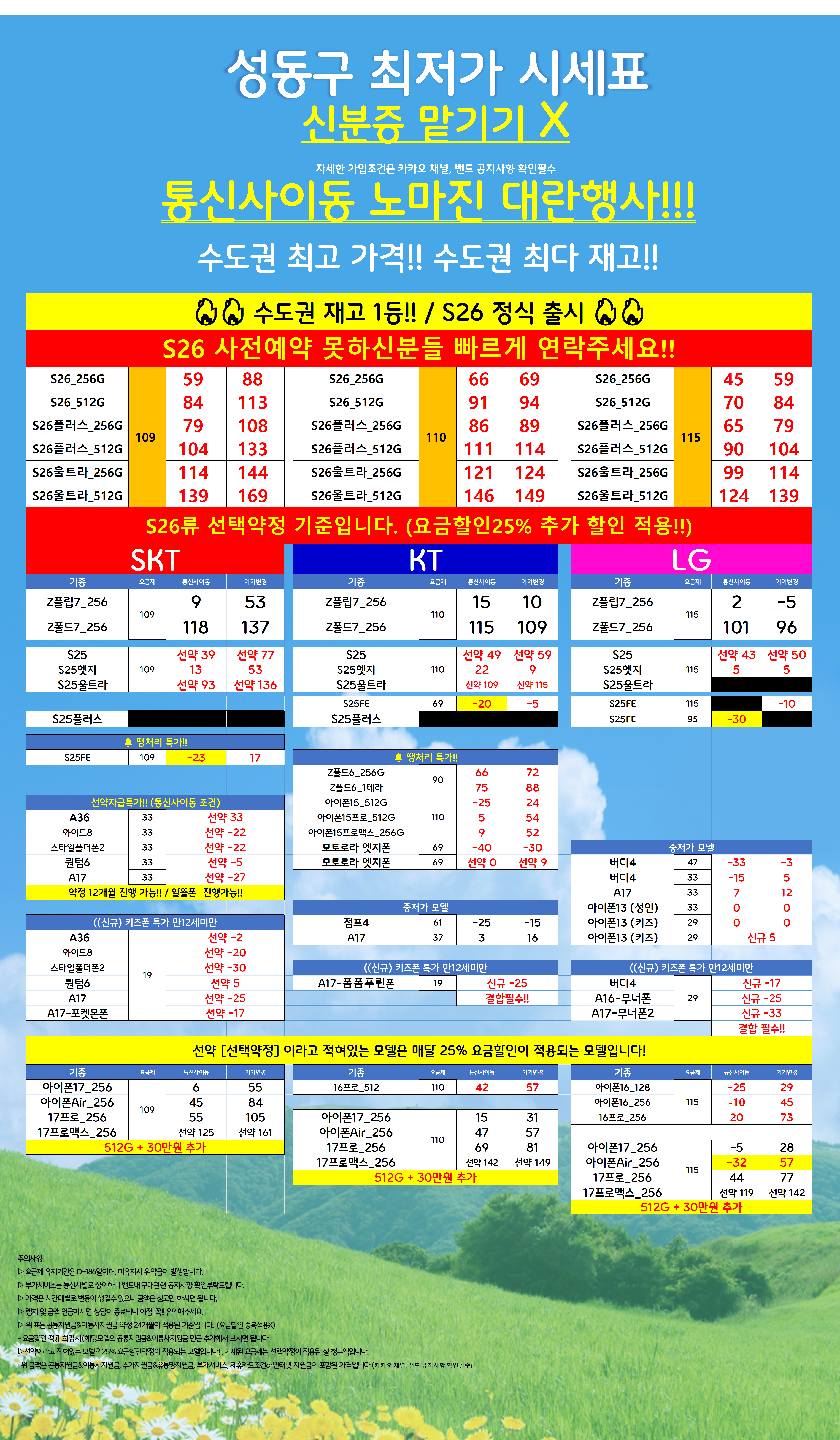 [서울 성동구 시세표] 서울시 성동 성동구 휴대폰 성지 시세표