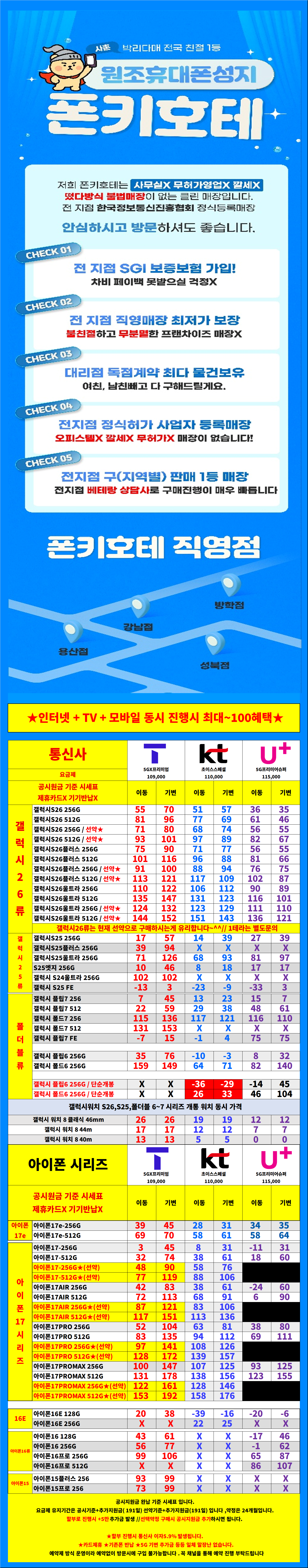 [서울 성북구 시세표] 서울시 성북구 휴대폰 성지 시세표