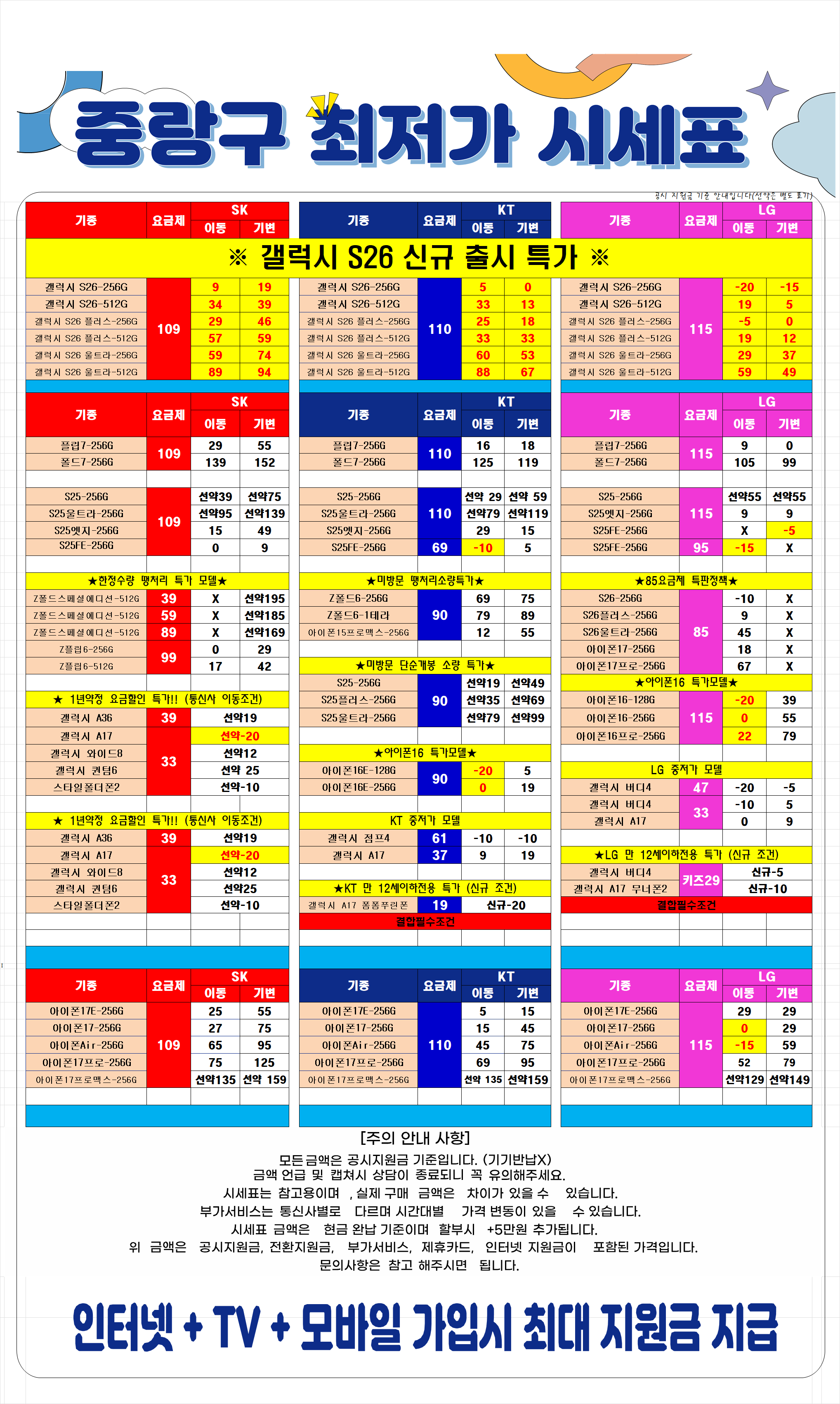 [서울 중랑구 시세표] 서울시 중랑구 휴대폰 성지 시세표