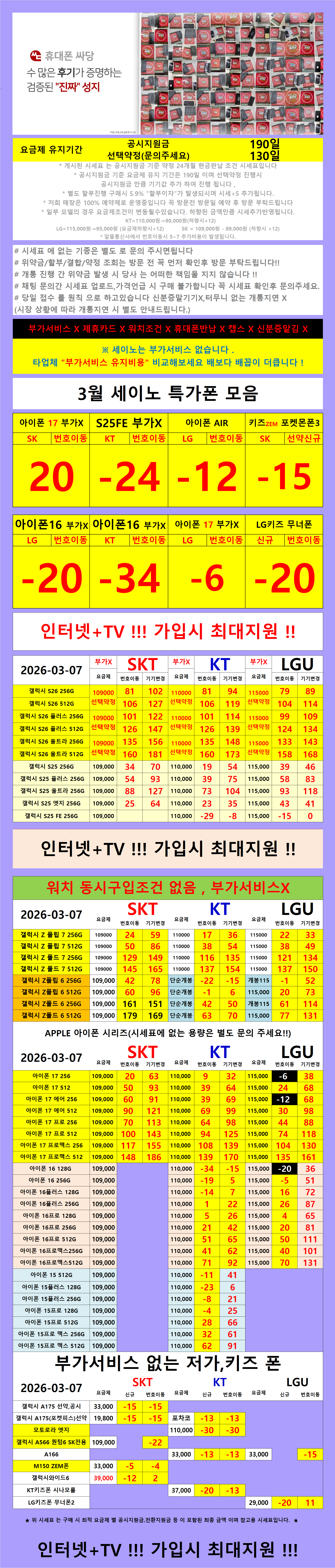 부가서비스 조건 및 추가 가입이 없어요.