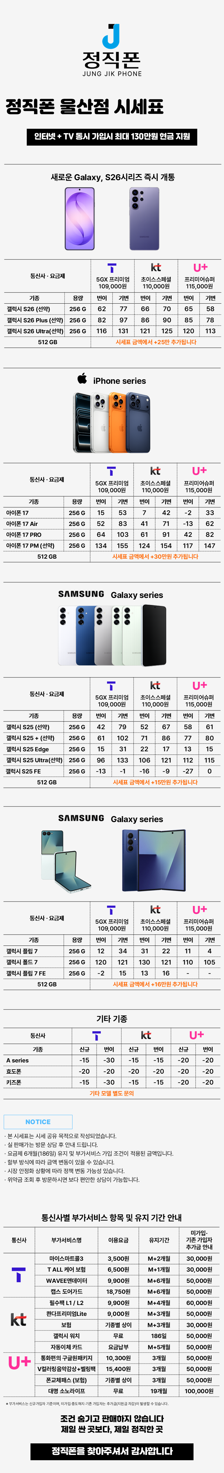 [울산 남구 시세표] 울산 전지역 S26즉시개통 전모델 최저가 시세표