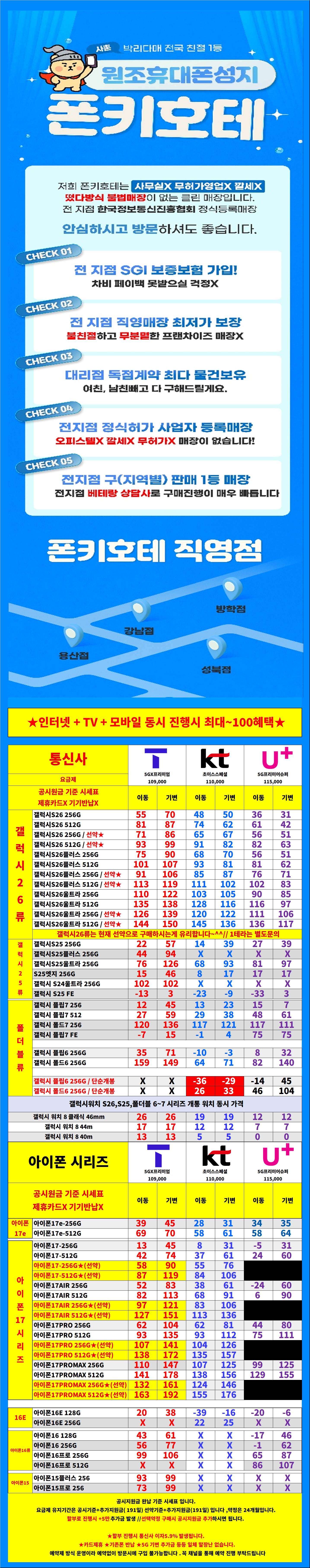 [인천 서구 시세표] 인천광역시 서구 검단 휴대폰 성지시세표
