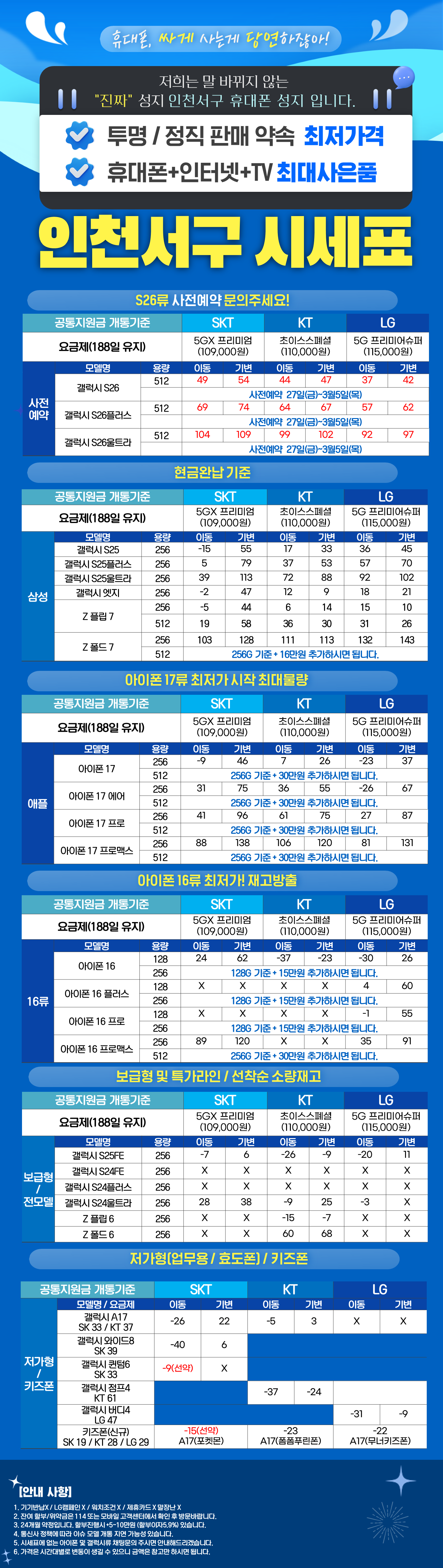 [인천 서구 시세표] 인천광역시 서구 휴대폰 성지 시세표