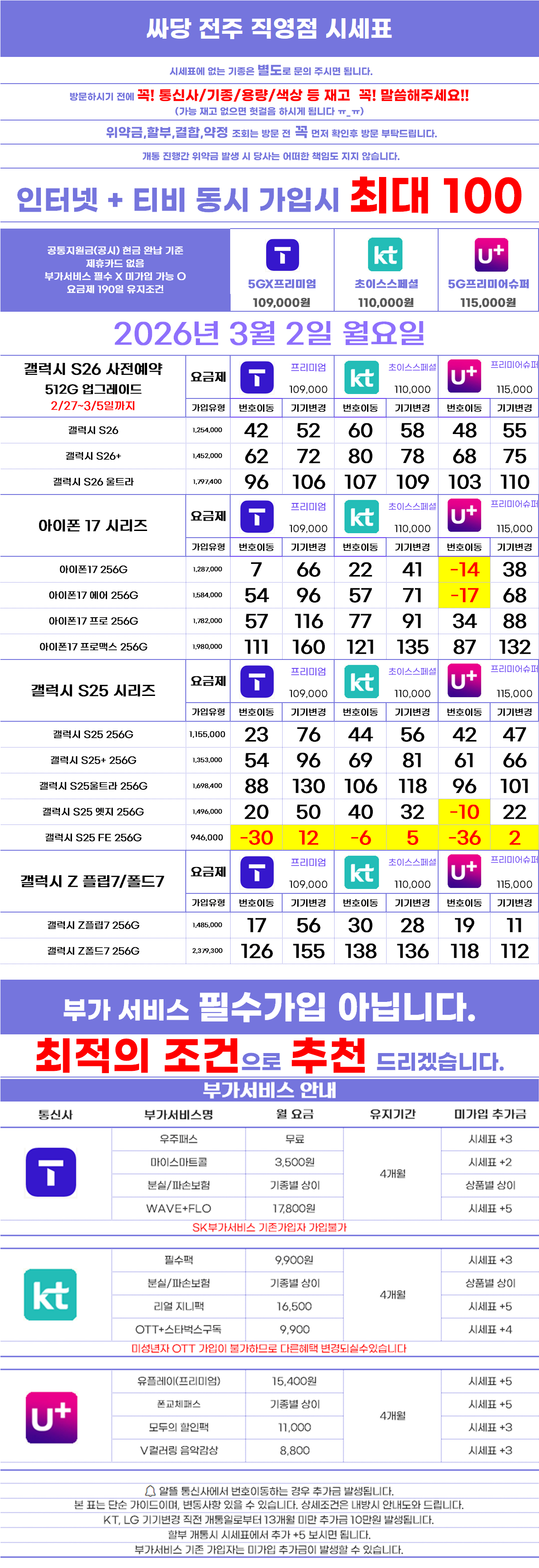 (시세표에 제휴카드를 넣는 업체, 부가서비스 추가금 확인 꼭 부탁드립니다!)