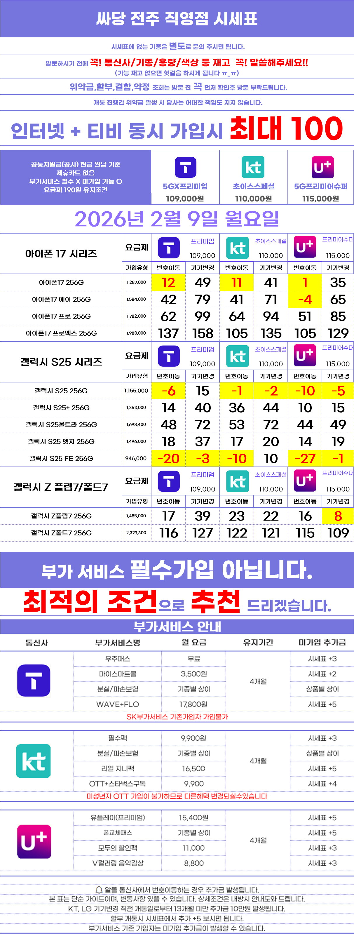 모든 가격은 공시지원금 기준 입니다.