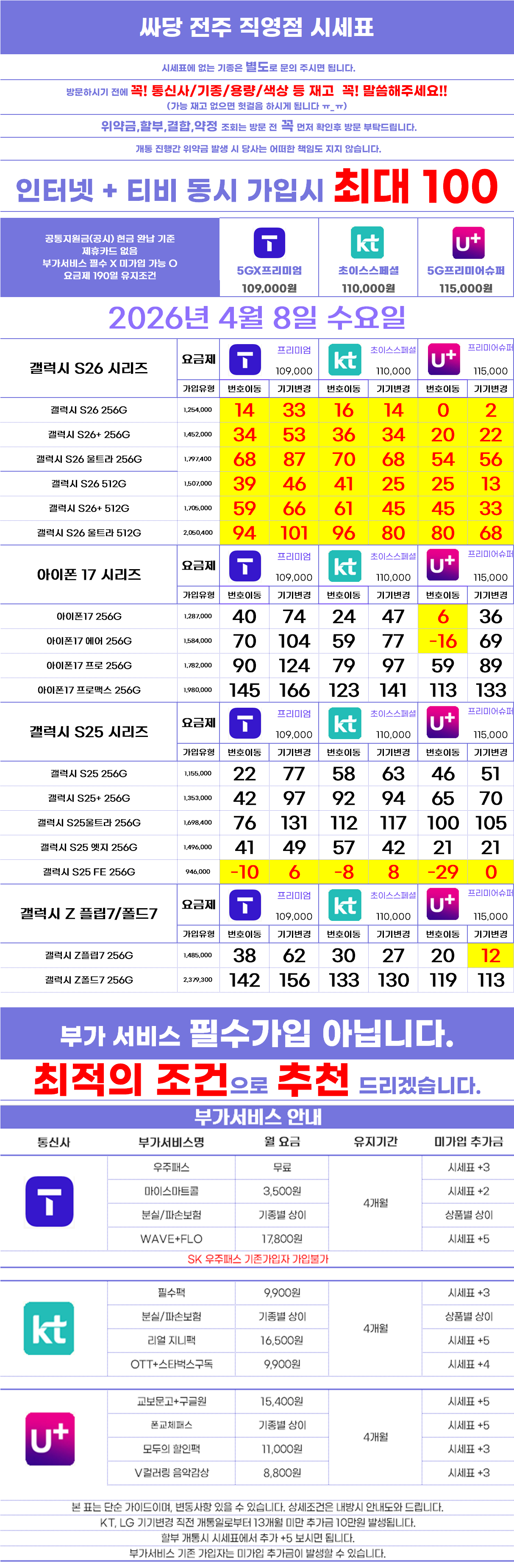 [전북특별자치도 전주시 시세표] 전북 전주 전주시 완산구 휴대폰 성지 시세표