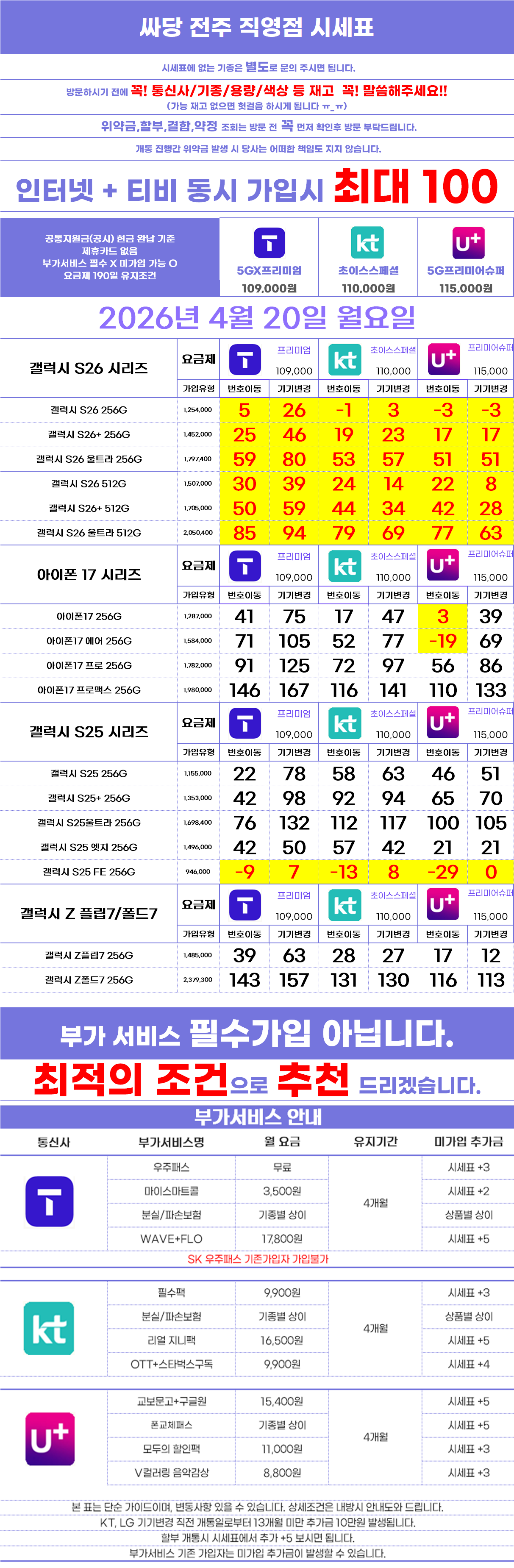 [전북특별자치도 전주시 시세표] 전북 전주 전주시 완산구 휴대폰 성지 시세표