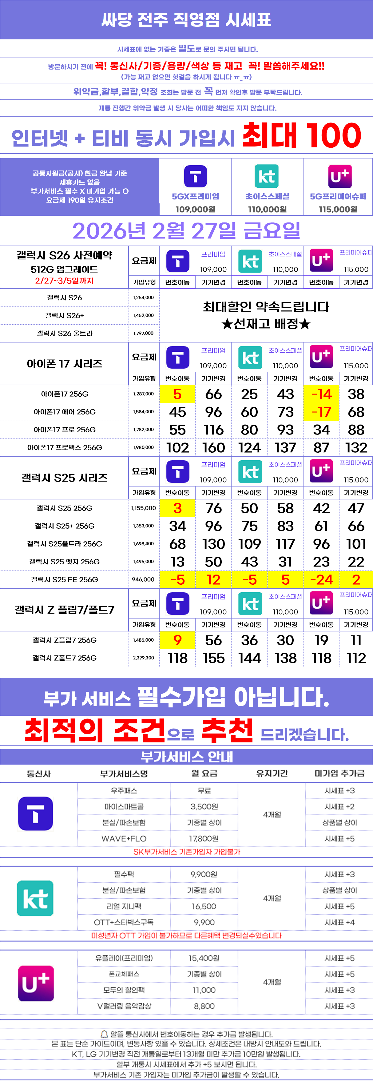 [전북특별자치도 전주시 시세표] 전북 전주 전주시 휴대폰 성지 시세표