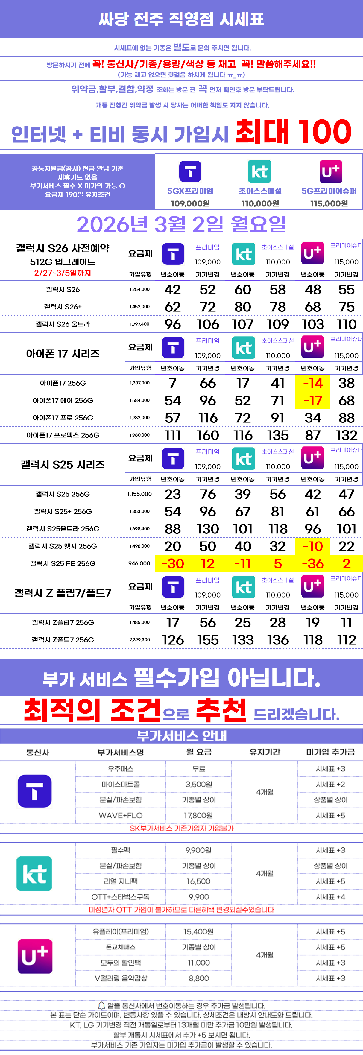 [전북특별자치도 전주시 시세표] 전북 전주 전주시 휴대폰 성지 시세표