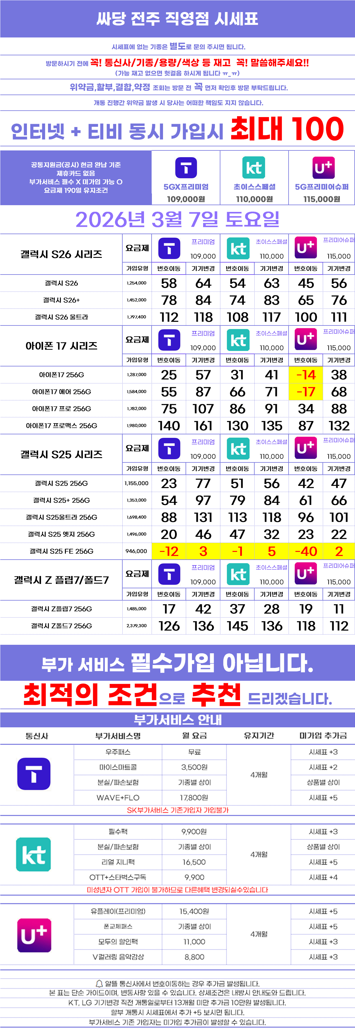 [전북특별자치도 전주시 시세표] 전북 전주 전주시 휴대폰 성지 시세표