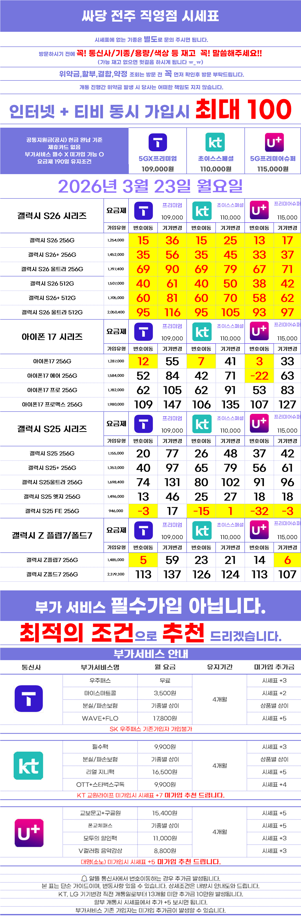 [전북특별자치도 전주시 시세표] 전북 전주 전주시 휴대폰 성지 시세표