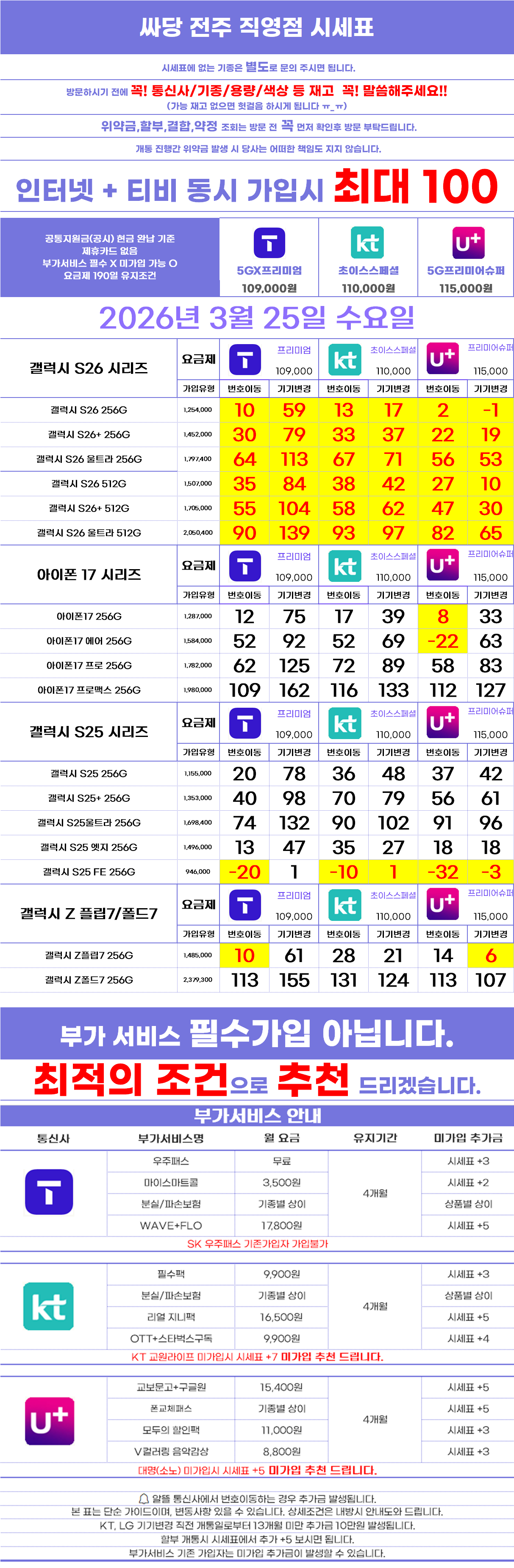 [전북특별자치도 전주시 시세표] 전북 전주 전주시 휴대폰 성지 시세표