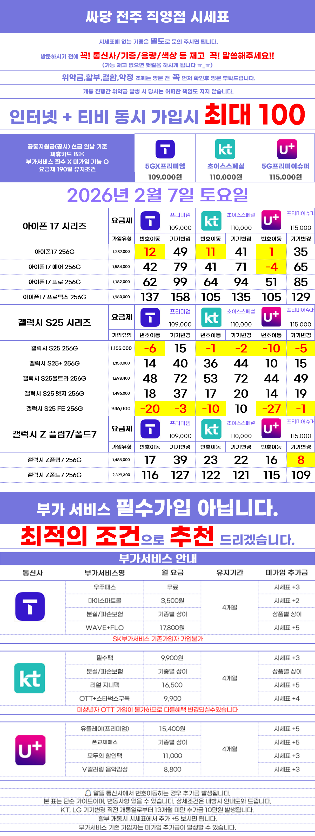 본 업체는 불법보조금을 지원하지 않습니다 시세표에 최대 지원금 (공시,추가,전환지원금) 및 인터넷+TV 결합 지원금+제휴카드 금액이 포함되어 있습니다