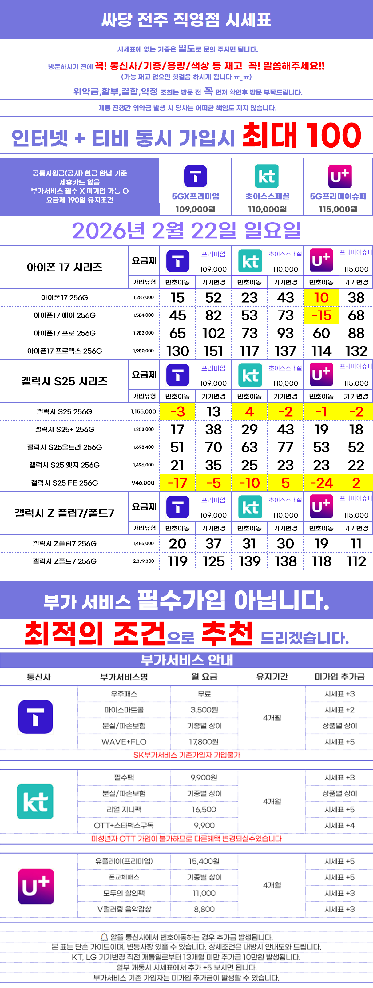 [전북특별자치도 전주시 시세표] 전북 전주 전주시 휴대폰 성지 시세표