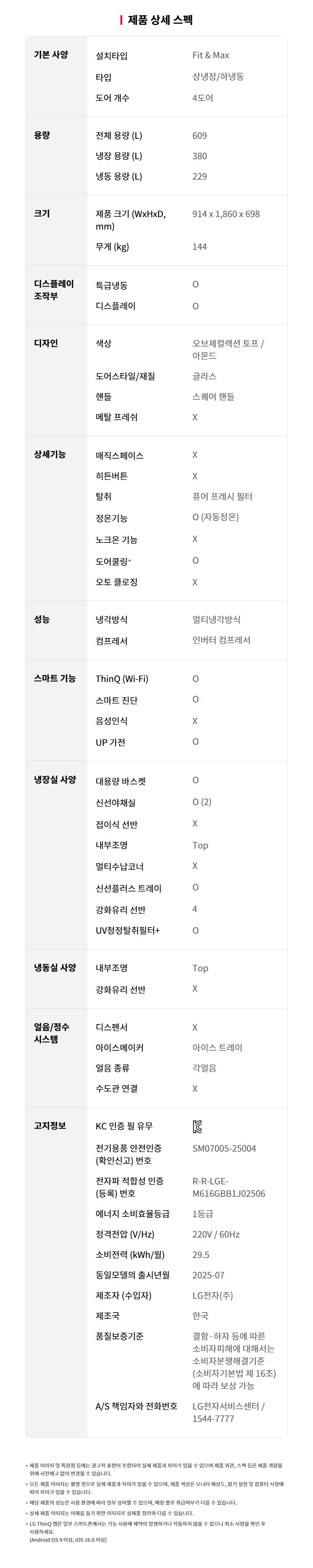 LG전자 디오스 AI 오브제컬렉션 Fit & Max 609L 1등급 토프 아몬드 냉장고 (프리미엄/12개월 방문관리)